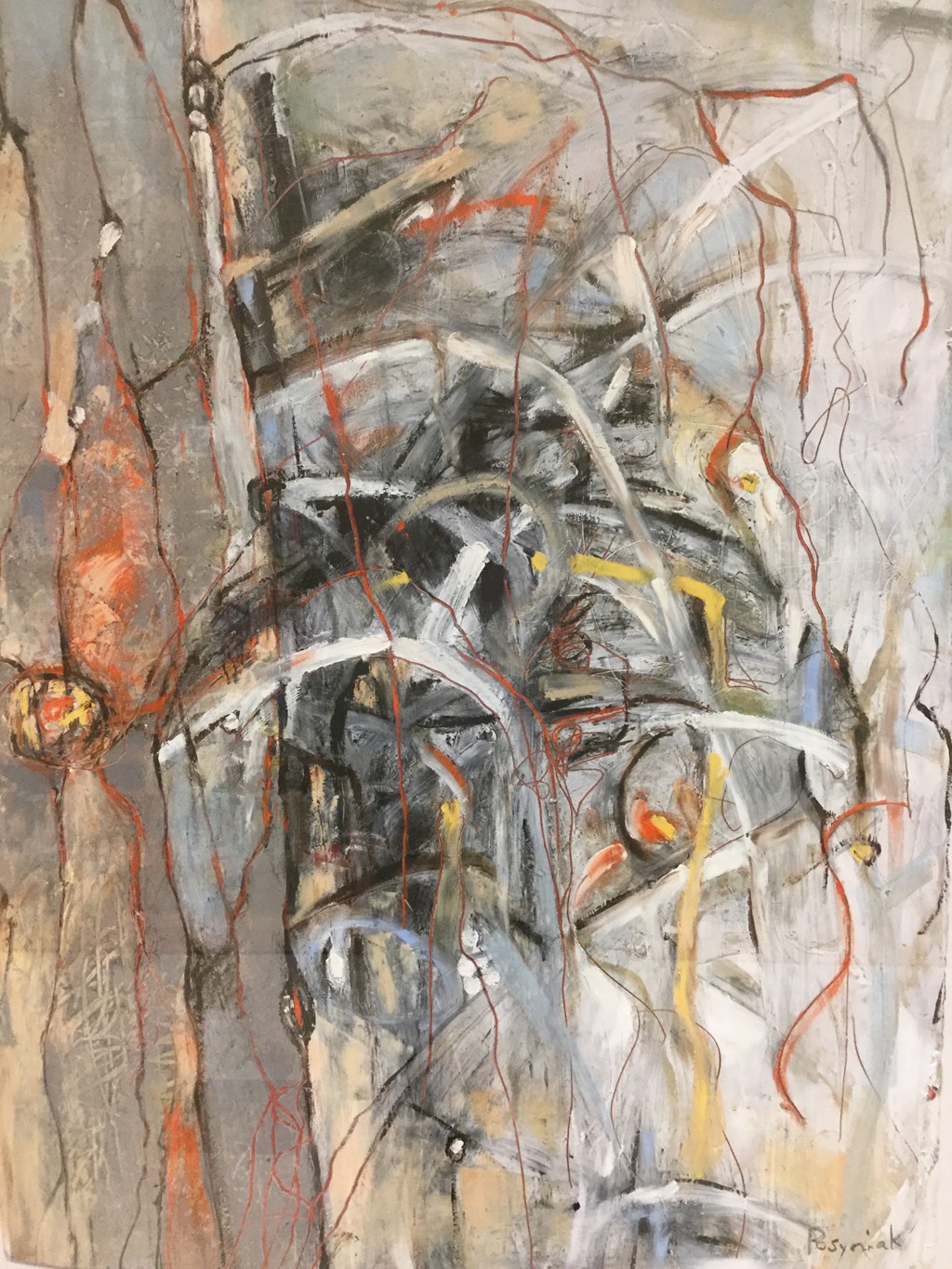 Artist Statement: PONDEROSA In 2015, Nancy Holmes, a poet and Associate Professor in Creative Writing at the University of British Columbia in Kelowna invited me to collaborate with her on the topic of the ponderosa pine. Having holidayed in the Okanagan for over 30 years, I was already familiar with the ponderosa pine but thanks to Nancy and my two artist residencies in Kelowna, I became deeply immersed in all aspects of the pinus ponderosa (the reflective pine) and its dry, rocky and fire-prone environment, heartrendingly beautiful but tough to live in. Although programmed to resist fire, this tree has been compromised by the pine beetle infestations, leaving it more vulnerable to the increasing frequency of fires, an aspect I incorporate into many of the paintings.